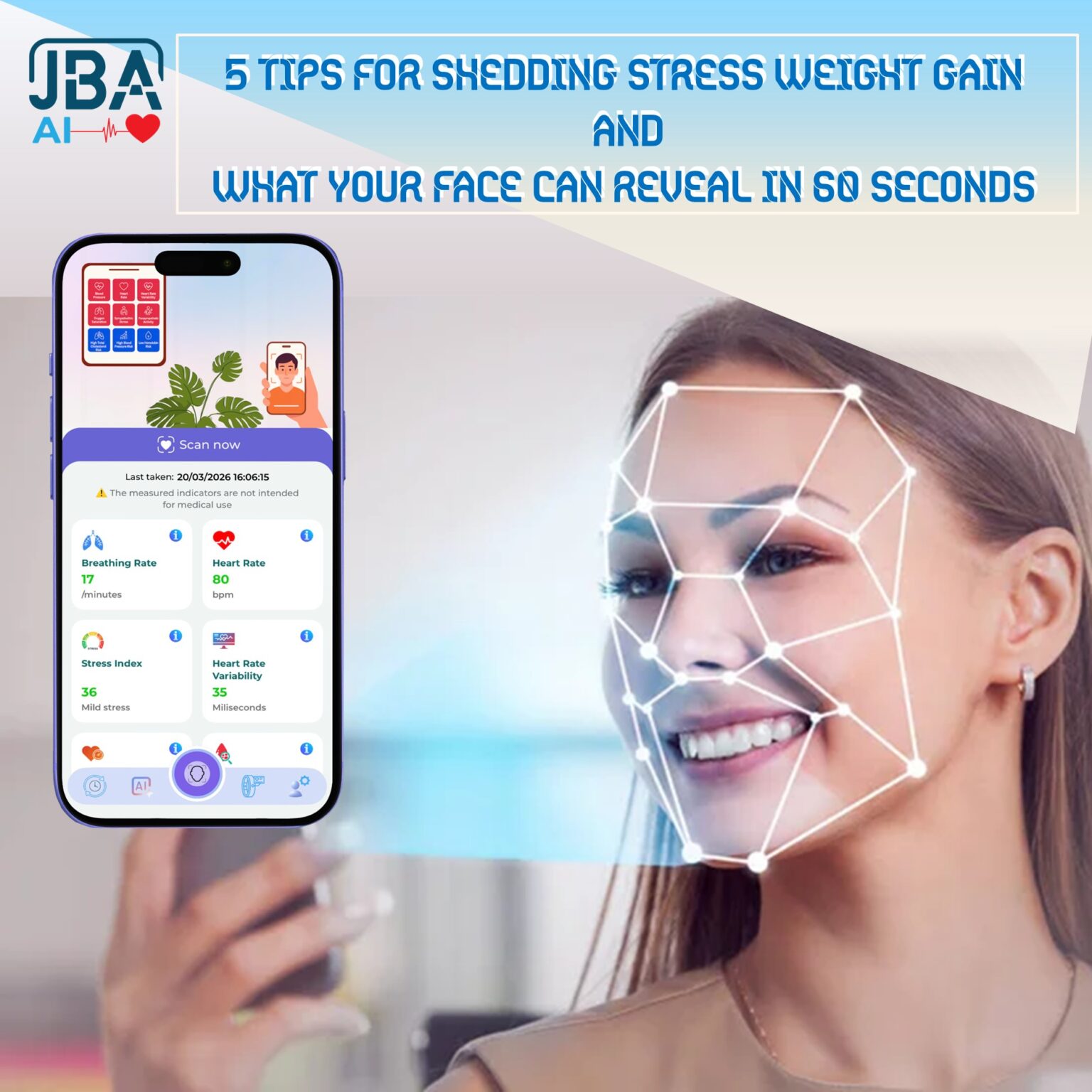 Taking a health check with JBAAI’s technology is effortless, even for those without technical expertise. It’s as simple as taking a 35-60 second video selfie! For optimal results, users should remain still, avoid talking, and ensure they are in a well-lit environment. JBAAI’s technology is designed to measure health indicators while the user is at rest.